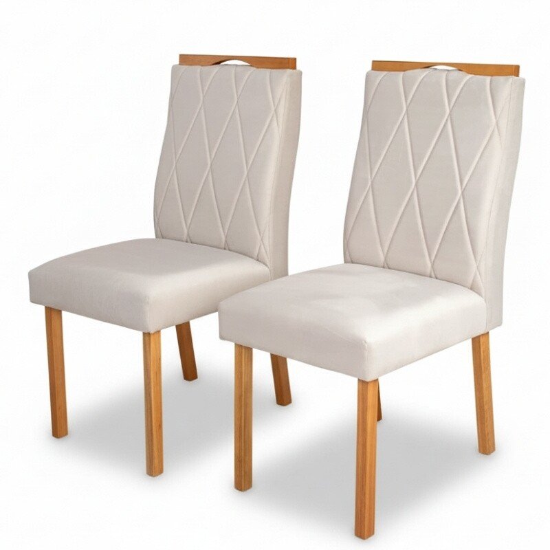 3{%%}Descrição{%%}2 Cadeiras Lisboa Bege 512 Madeira Maciça Art Assento – Entregue Montada