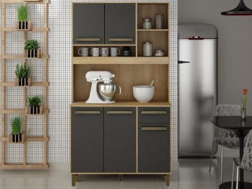 Armário Kit de Cozinha Ametista 5 portas – Cinamomo/Grafite