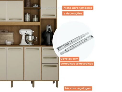 Armário Kit de Cozinha Petra 11 portas – Cinamomo/Off White