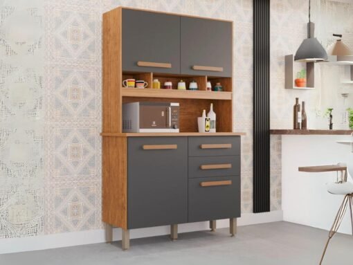 Armário Kit de Cozinha Sofia 4 Portas 2 Gavetas – Cinamomo/Grafite
