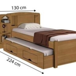 Bicama Milênio Plus – Cinamomo Medidas: Altura: 1,00m Largura: 1,30m Profundidade: 2,24m A Bicama Milênio Plus possui estrutura de ótima qualidade, que proporciona maior durabilidade ao móvel e da um toque especial ao produto, é um móvel completo, que além de beleza, proporciona praticidade e economia de espaço, com gavetas e prateleiras, além de um baú embutido. Características 100% MDF Baú na cabeceira A cantoneira com as prateleiras podem ser montadas de qualquer lado Barrotes de madeira maciça extrafortes Barras extrafortes Ripas de MDF 09mm 06 barrotes bem distribuídos, aumentando ainda mais a resistência das ripas e da cama Cantoneira metálica para reforço das barras Cantoneira metálica para reforço dos barrotes Corrediça telescópica na auxiliar de 40cm Colchão pra auxiliar deve ter a altura máxima de 14cm e largura de 88cm * As imagens dos produtos são meramente ilustrativas. As cores podem mudar dependendo do brilho, tipo de câmera, ou até mesmo como as imagens são exibidas em computadores ou notebooks com telas de LCD ou LED, tablets ou smartphones, dependendo da quantidade de pixels, deixando as imagens com cores mais escuras ou mais claras.