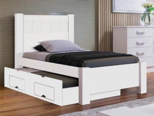 Bicama Primícia Plus – Branco A Bicama Primícia Plus é belíssima e conta com um design funcional, que ocupa pouco espaço no ambiente. A cama auxiliar fica embaixo da principal e basta puxá-la para começar a fazer uso dela. É ideal para quartos pequenos e para caso precise de uma cama extra para receber um amigo, ou divida o dormitório com alguém. Medidas: Altura: 1.18m Largura: 1.03m Profundidade: 2.00m Características 100% MDF Espessura do pé 100x45mm Estrado com 6 travessões Barra com 15cm de altura e 25mm de espessura Barrotes de madeira maciça extrafortes Barras extrafortes Ripas de MDF 09mm 06 barrotes bem distribuídos, aumentando ainda mais a resistência das ripas e da cama Cantoneira metálica para reforço das barras Cantoneira metálica para reforço dos barrotes Corrediça telescópica na auxiliar de 40cm Colchão pra auxiliar deve ter a altura máxima de 14cm e largura de 88cm * As imagens dos produtos são meramente ilustrativas. As cores podem mudar dependendo do brilho, tipo de câmera, ou até mesmo como as imagens são exibidas em computadores ou notebooks com telas de LCD ou LED, tablets ou smartphones, dependendo da quantidade de pixels, deixando as imagens com cores mais escuras ou mais claras.