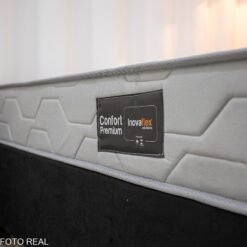 3{%%}Descrição{%%}Box Solt. Sued Preto Nosso Sonho + Colchão Solteiro Confort Premium 88x188x55 D28 – Inovaflex