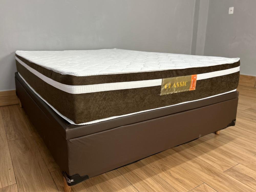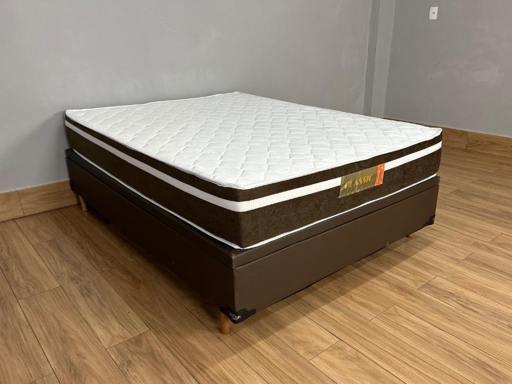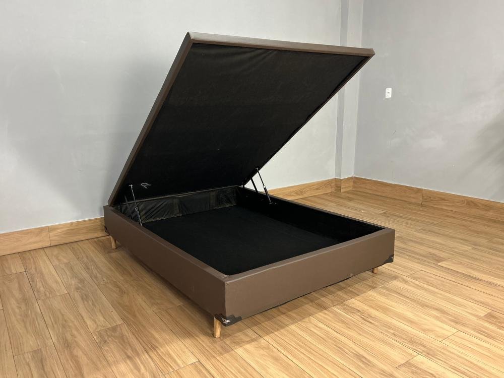 Base Box Baú Carioca + Colchão Bio Classic Molas ensacadas Casal – Marrom Corino