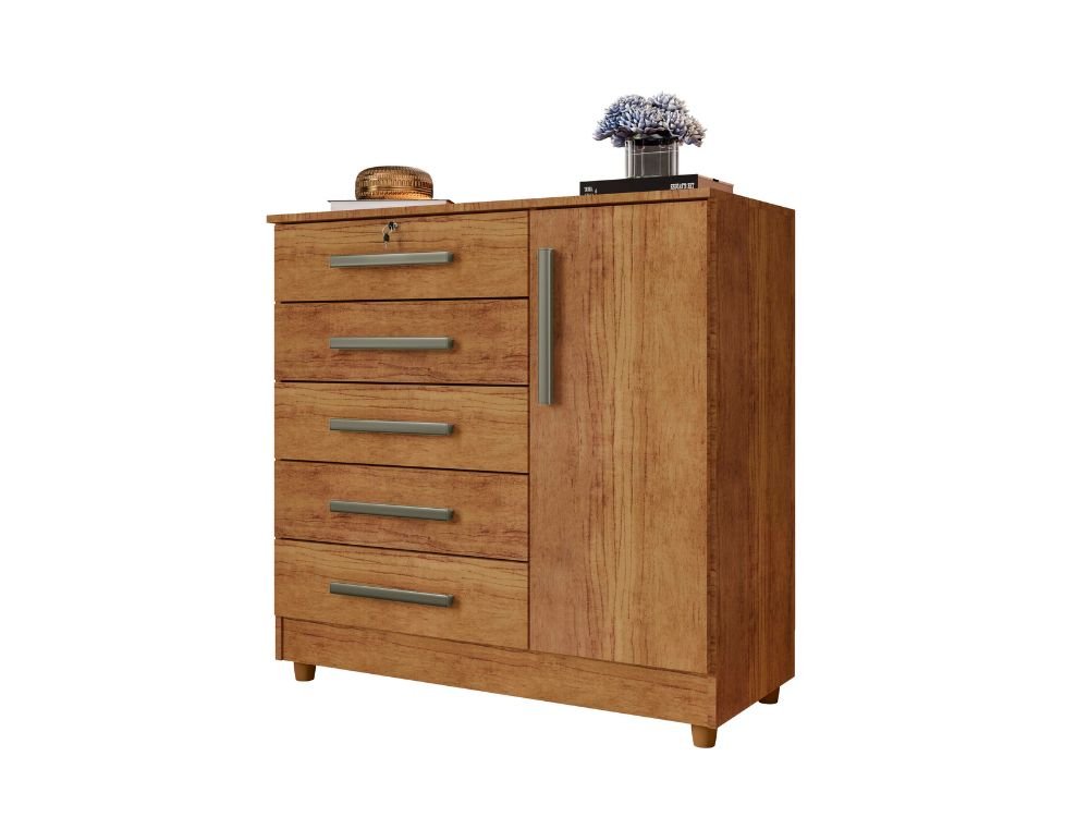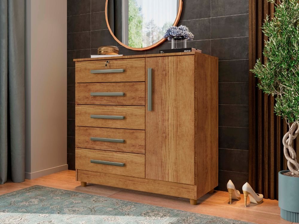 Cômoda Vitória 5 gavetas 1 porta – Cedro