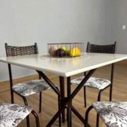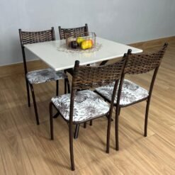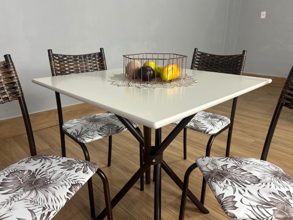 Conjunto Mesa Tubular Macaé Tampo Quadrado Com 4 Cadeiras Ratam – Marrom/Off White