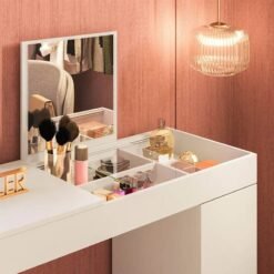 3{%%}Descrição{%%}Escrivaninha e Penteadeira Love Branco/Cinamomo Larg. 1.212m – Mobler