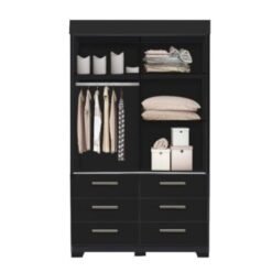 Guarda-Roupa Buzios 2 portas de correr com espelho 6 gavetas – Preto