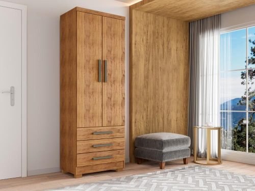 O Guarda-Roupa Floripa é ideal pra quem gosta de organização e tem pouco espaço, pois conta com duas portas com cabideiro e prateleiras internas para guardar suas roupas e objetos mais 3 gavetas espaçosas.