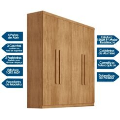 3{%%}Descrição#Montagem{%%}Guarda-roupa Império Nature 4 Portas 3 Gavetas Larg. 1.80m 100% MDF Rufato