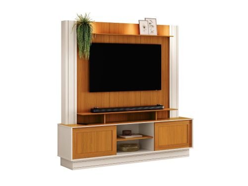 O Home Átila 55″ da EDN é um móvel de entretenimento compacto, projetado para Tvs de até 55″ polegadas, ideal para espaço menores. Com compartimentos versáteis, incluindo prateleiras e nichos, oferece armazenamento inteligente para dispositivos eletrônicos e objetos decorativos. Seus design contemporâneo e acabamento elegante completam a decoração da sala.