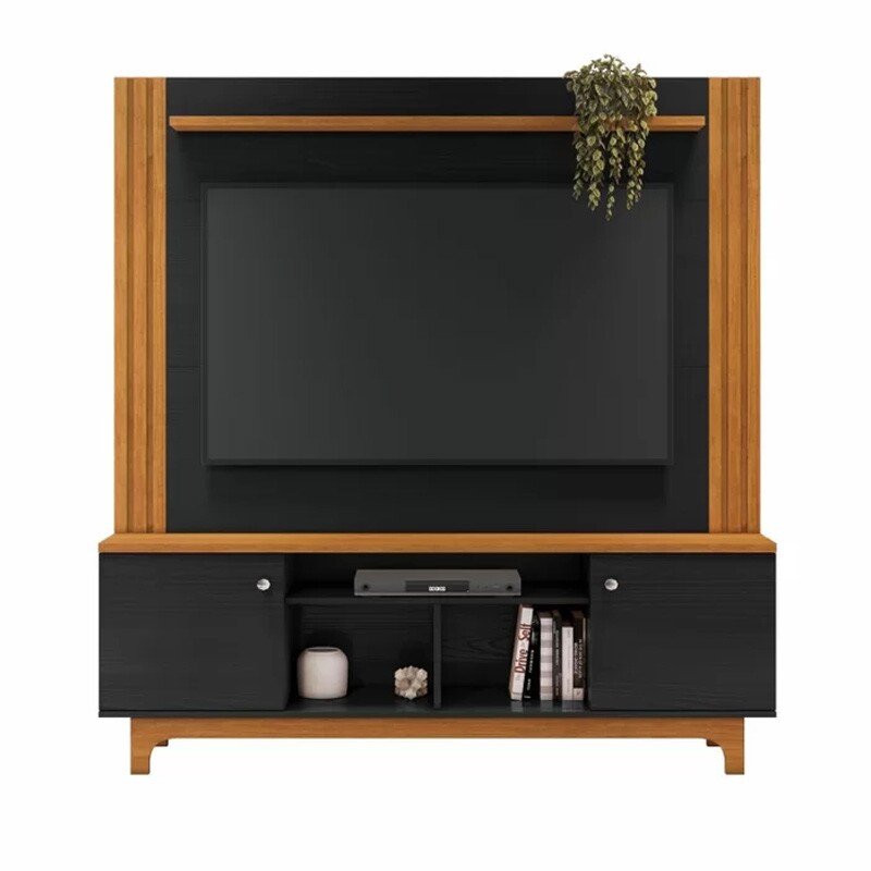 3{%%}Descrição{%%}Home Bálsamo Larg. 1.50m Cinamomo/Preto C/ Detalhe Ripado TV até 65″ – JCM