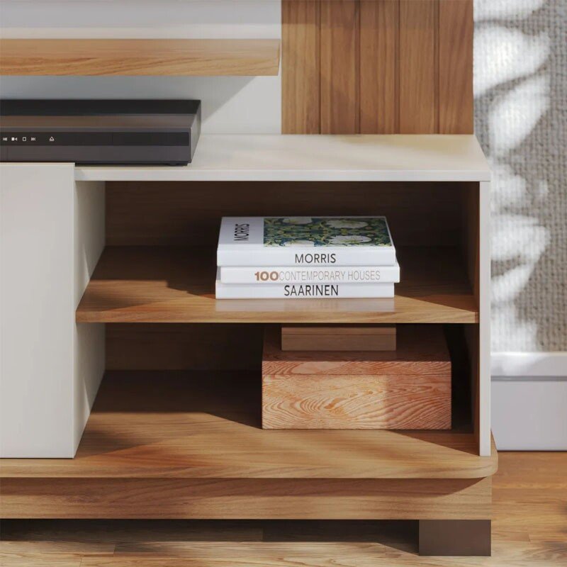 3{%%}Descrição{%%}Home Jurerê Larg. 1.50m Off/Freijó para TV até 65″ – Colibri