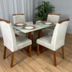 Mesa de Jantar Bali 1.20×0.80 Com 4 Cadeiras Isa – Minas Plac /Ouro Decor