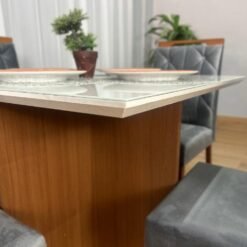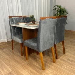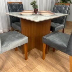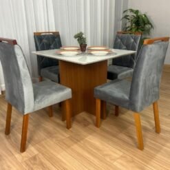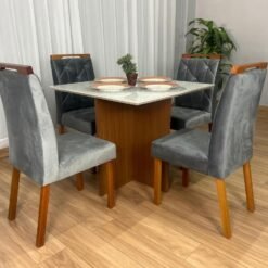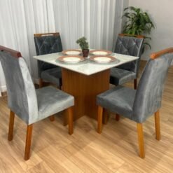 Mesa de Jantar Helo 0.90×0.90 Com 4 Cadeiras Londres – Polimam/ Ouro Decor