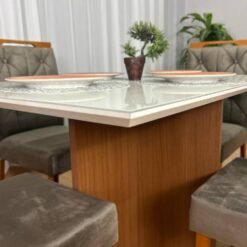 Mesa de Jantar Helo 1.20×0.90 Com 4 Cadeiras Jasmim – Polimam/Ouro decor
