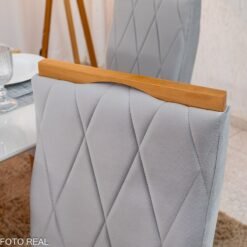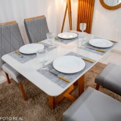 3{%%}Descrição#Como Montar{%%}Mesa de Jantar Pedro 120×80 Vidro Off/Base Madeira + 4 Cad. Lisboa Veludo Prata 514 Madeira Art Assento – Entregue Montada