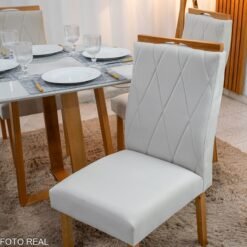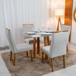 3{%%}Descrição#Como Montar{%%}Mesa de Jantar Pedro 90×90 Vidro Off/Base Madeira + 4 Cad. Lisboa Veludo Bege 512 Madeira Art Assento – Entregue Montada