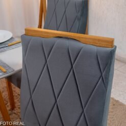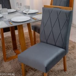 3{%%}Descrição#Como Montar{%%}Mesa de Jantar Pedro 90×90 Vidro Off/Base Madeira + 4 Cad. Lisboa Veludo Cinza 507 Madeira Art Assento – Entregue Montada