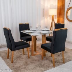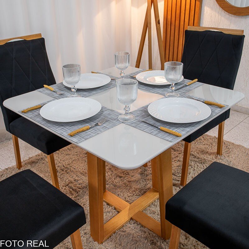 3{%%}Descrição#Como Montar{%%}Mesa de Jantar Pedro 90×90 Vidro Off/Base Madeira + 4 Cad. Lisboa Veludo Preto 504 Madeira Art Assento – Entregue Montada
