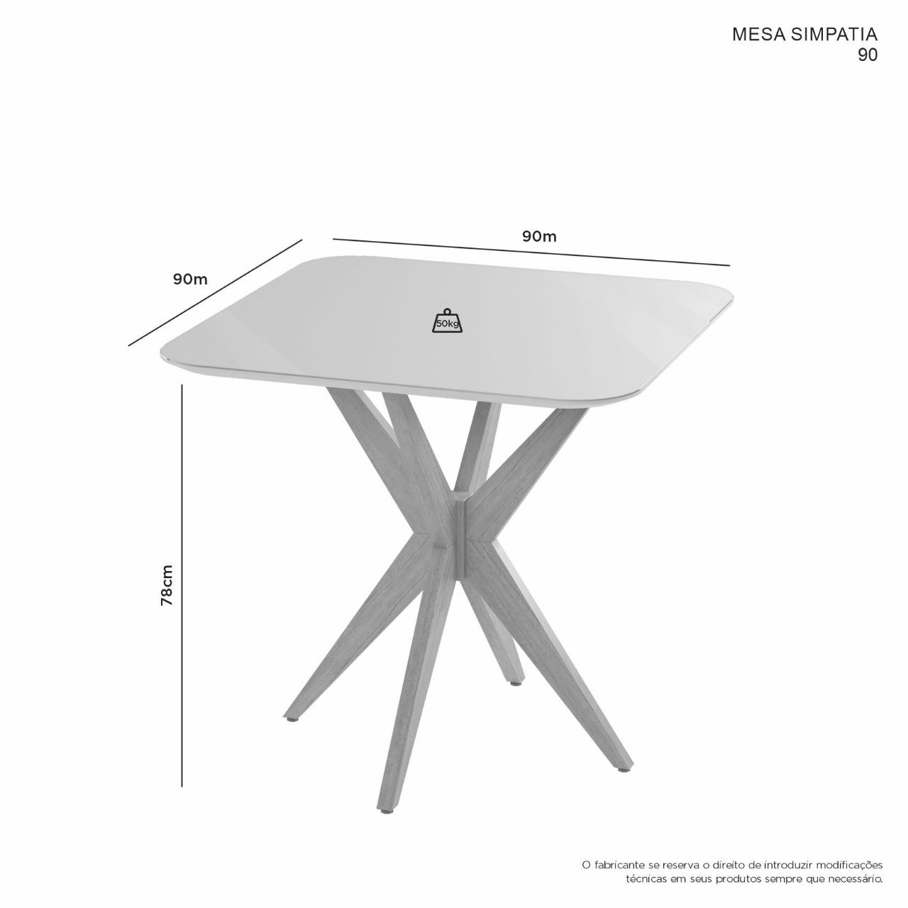 Mesa de Jantar Simpatia 0.90×0.90 Quadrada – Cinamomo