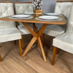 Mesa de Jantar Simpatia 0,90×0,90 Quadrada Com 4 cadeiras Jasmim – Cinamomo/Bege