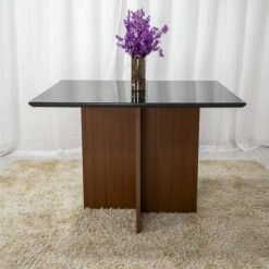 Mesa Jantar Helo 120×90 Tampo Grafite Vidro Preto/Base Mel – Poliman