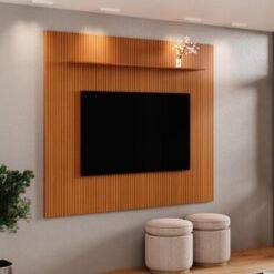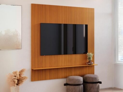 Painel com pintura que dá efeito ripado 1 Prateleira Para TV de até 55″