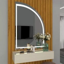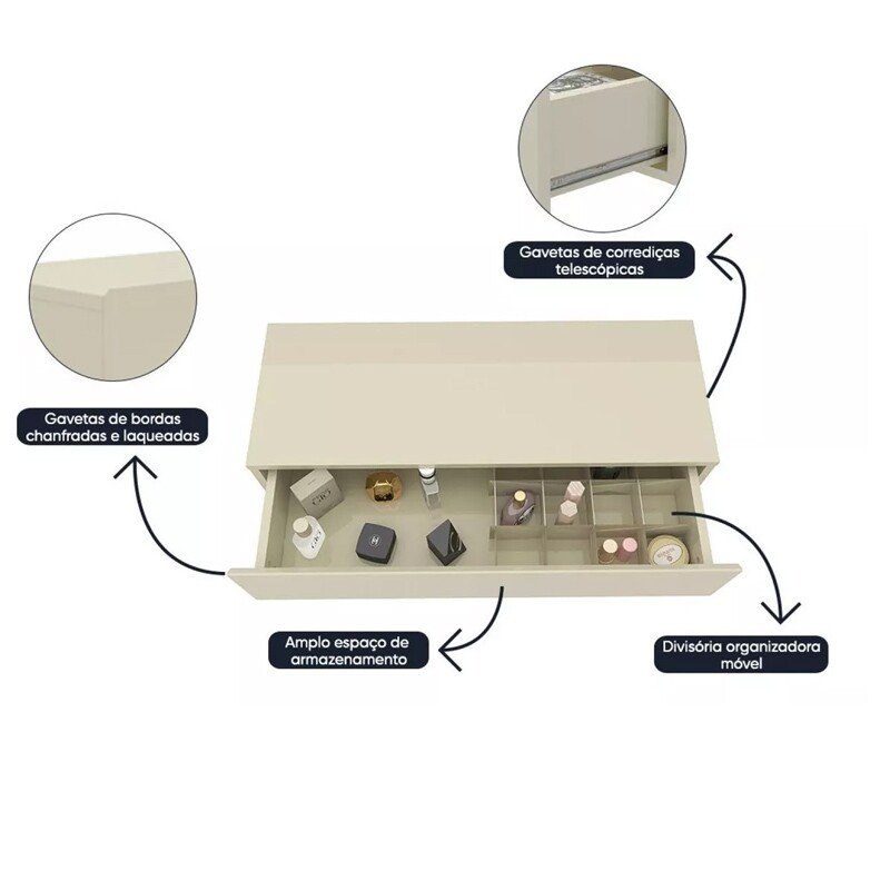3{%%}Descrição{%%}Penteadeira Realeza Ripada Naturale/Off C/ Espelho e LED Larg. 0.94m – Gelius