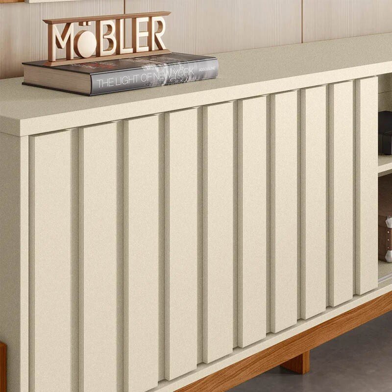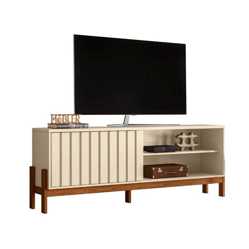 3{%%}Descrição{%%}Rack Bancada New Aurora Larg. 1.88m Pérola Metalizada/Cinamomo Mel para TV até 75″ – Mobler
