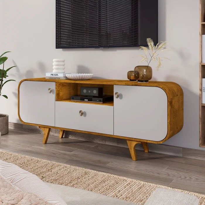 3{%%}Descrição{%%}Rack Noronha Larg. 1.56m Nature/Off para TV até 55″ – Bechara
