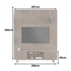 3{%%}Descrição{%%}Rack Triunfo Larg. 2.00m Cinamomo + Painel Riso Larg. 2.07m Cinamomo Ripado para TV até 75″ – JCM