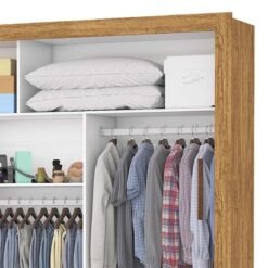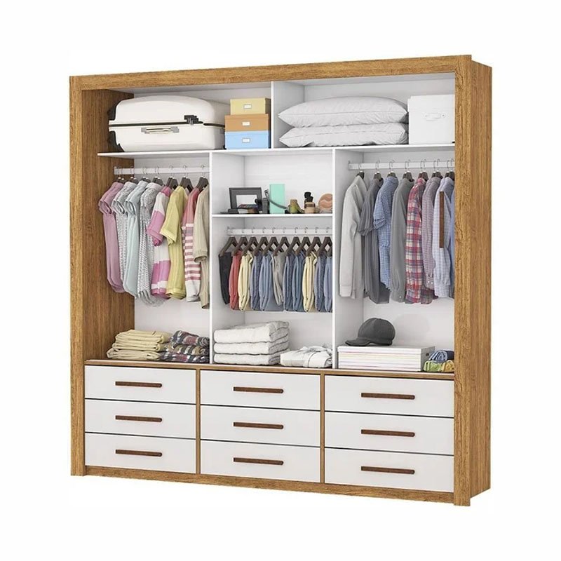 3{%%}Descrição{%%}Roupeiro Anjos Cinamomo/Off 3 Portas 9 Gavetas C/ 1 Espelho Larg. 1.91m – Carioca Móveis