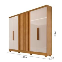 3{%%}Descrição{%%}Roupeiro Cabo Frio 6 Portas e Detalhe Ripado 100% MDF Nature/Off Larg. 1.80m – Bianchi