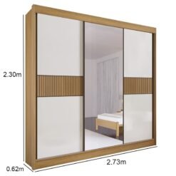 3{%%}Descrição{%%}Roupeiro Casal Los Angeles Cinamomo/Off 3 Portas 6 Gavetas C/ 1 Espelho Detalhe Ripado Portas Flex 100% MDF Larg. 2.73m – D Doro