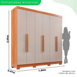 3{%%}Descrição{%%}Roupeiro Casal Recife Cinamomo/Off 6 Portas C/Pés Larg. 1.80m – Sallêto