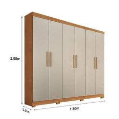 3{%%}Descrição{%%}Roupeiro Casal Sergipe Nature/Off 6 Portas C/ Pés Larg. 1.80m – Bianchi