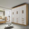 3{%%}Descrição{%%}Roupeiro Casal Turim Nature/Off 3 Portas 9 Gavetas C/ 1 Espelho 100% MDF Larg. 2.11 – Bianchi