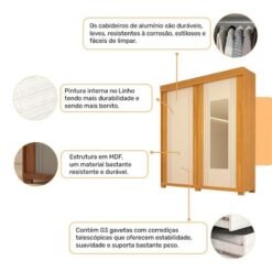3{%%}Descrição{%%}Roupeiro Heloisa Nature/Off 2 Portas C/ 1 Espelho e Pés 100% MDF Larg. 1.80m – ACP
