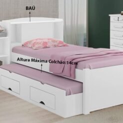 – Cama auxiliar com duas gavetas de abertura total de 40 cm