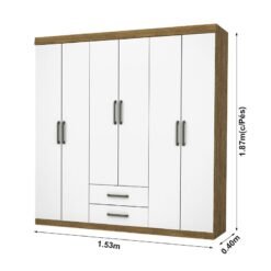 3{%%}Descrição{%%}Roupeiro Solteiro Áries Cinamomo/Branco 6 Portas 2 Gavetas C/Pés Larg. 1.53m – Carioca