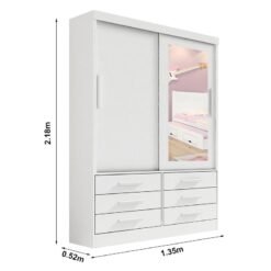 3{%%}Descrição#Como Montar{%%}Roupeiro Solteiro Merídian Branco 2 portas c/ 1 Espelho 6 Gavetas Larg. 1.35m – D Doro