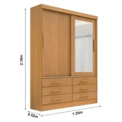 3{%%}Descrição#Como Montar{%%}Roupeiro Solteiro Merídian Cinamomo 2 portas c/ 1 Espelho 6 Gavetas Larg. 1.35m – D Doro