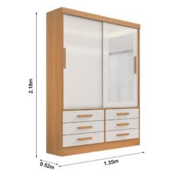 3{%%}Descrição#Como Montar{%%}Roupeiro Solteiro Merídian Cinamomo/Off 2 portas c/ 1 Espelho 6 Gavetas Larg. 1.35m – D Doro