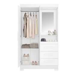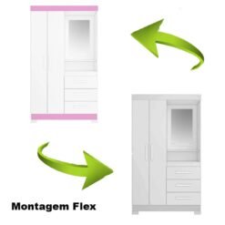 3{%%}Descrição{%%}Roupeiro Solteiro NT 6020 Branco/Rosa 2 portas 3 Gavetas Flex C/Pés Larg. 1.08m – Notável