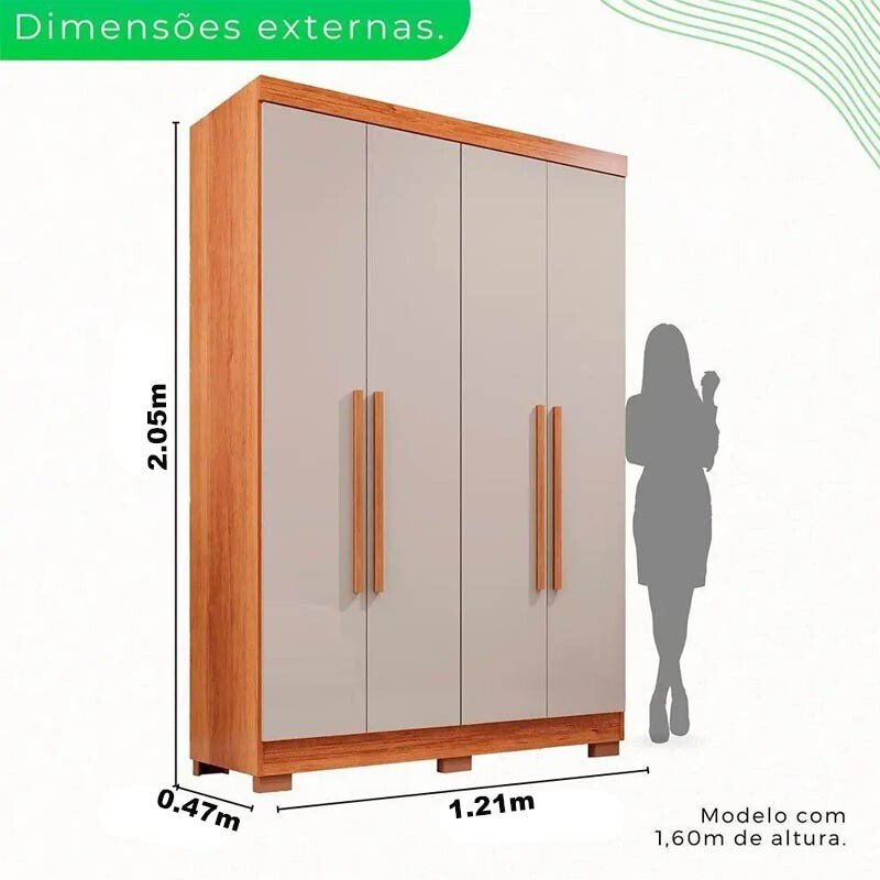 3{%%}Descrição{%%}Roupeiro Solteiro Recife Cinamomo/Off 4 Portas 2 Gavetas C/Pés Larg. 1.21m – Sallêto