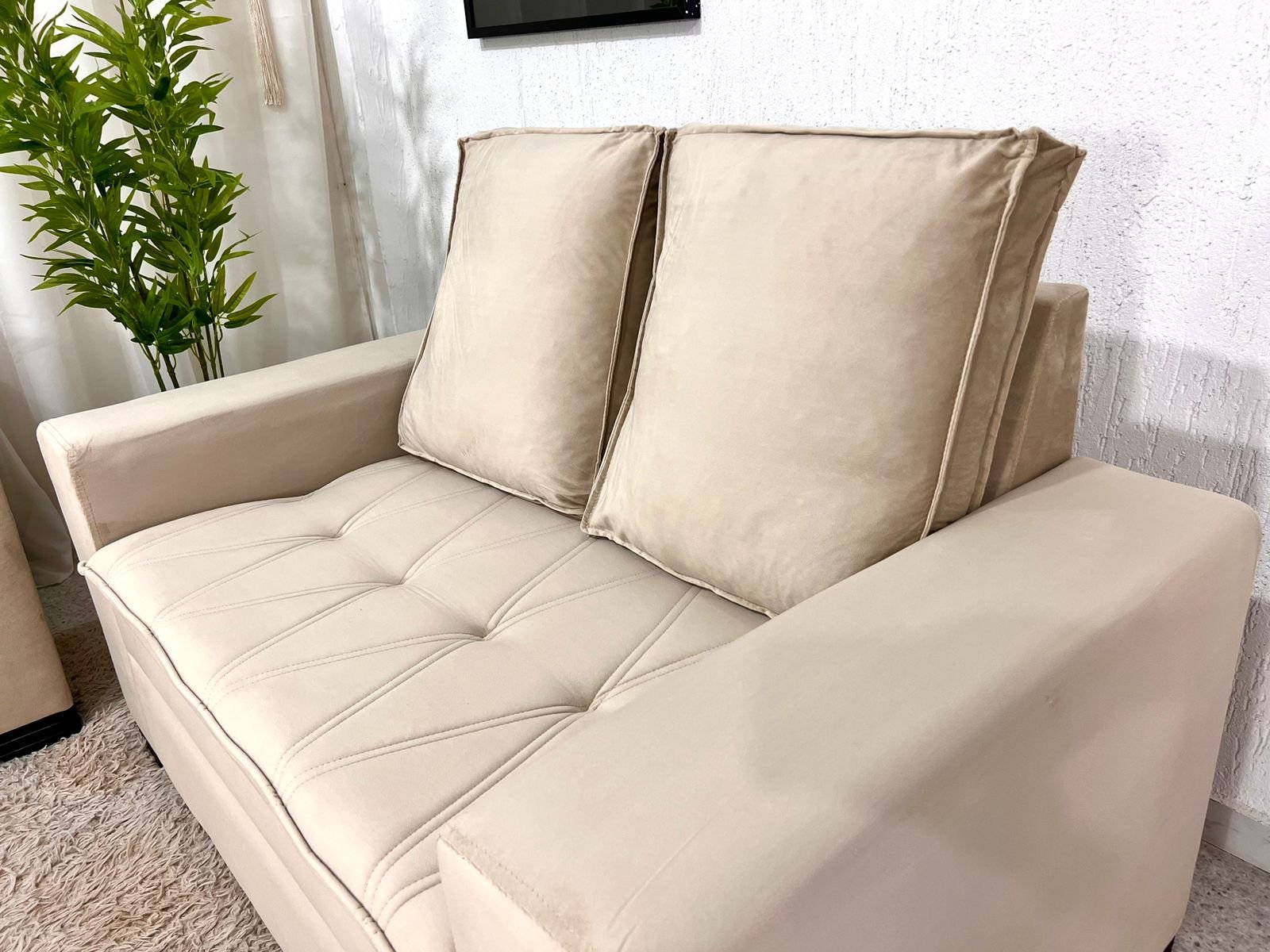3{%%}Descrição{%%}Sofá 3 e 2 lugares França com Puff Veludo Bege A32 Larg. 1.86m