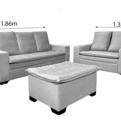 3{%%}Descrição{%%}Sofá 3 e 2 lugares França com Puff Veludo Terracota A62 Larg. 1.86m
