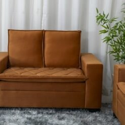 Sofá 3 e 2 lugares França com Puff Veludo Terracota A62 Larg. 1.86m