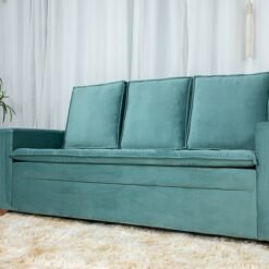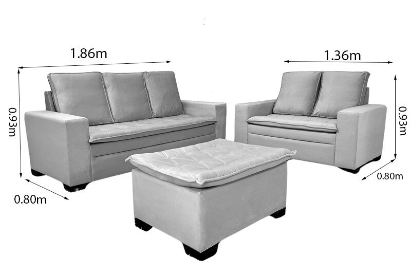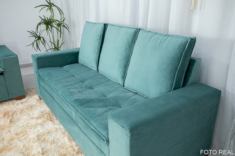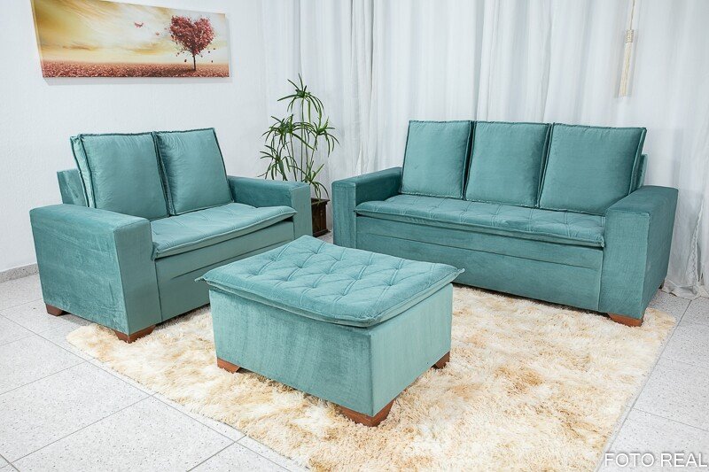 3{%%}Descrição{%%}Sofá 3 e 2 lugares França com Puff Veludo Verde A40 Larg. 1.86m